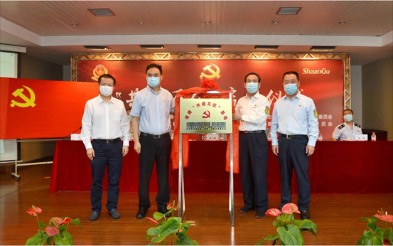 陕西省税务局党委委员、副局长郭章献;西安市税务局党委委员、总会计师朱跃斌;星空电竞集团党委书记、董事长,星空电竞董事长,标准工业集团党委书记、董事长李宏安;星空电竞集团党委副书记、总经理刘金平共同为党建“共建互促”基地揭牌。